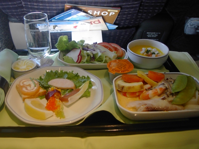 復路はマイルを使ってアップグレード。当時のJALビジネスラスは「SEASONS」と呼ばれていました。